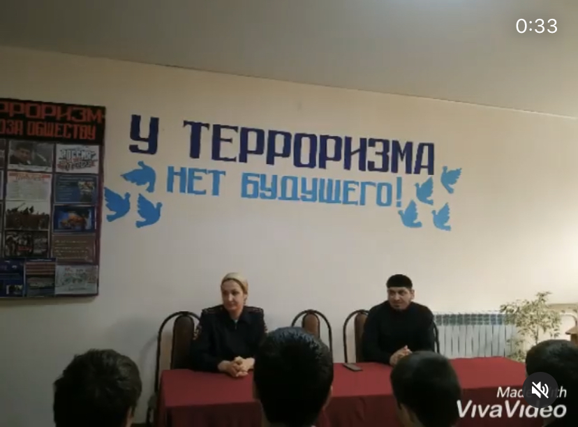 На встрече с учащимися присутствовали Кадий Наурского района –Халуев А.А., педагог-организатор по ДНВ Кубиев У.Ш.