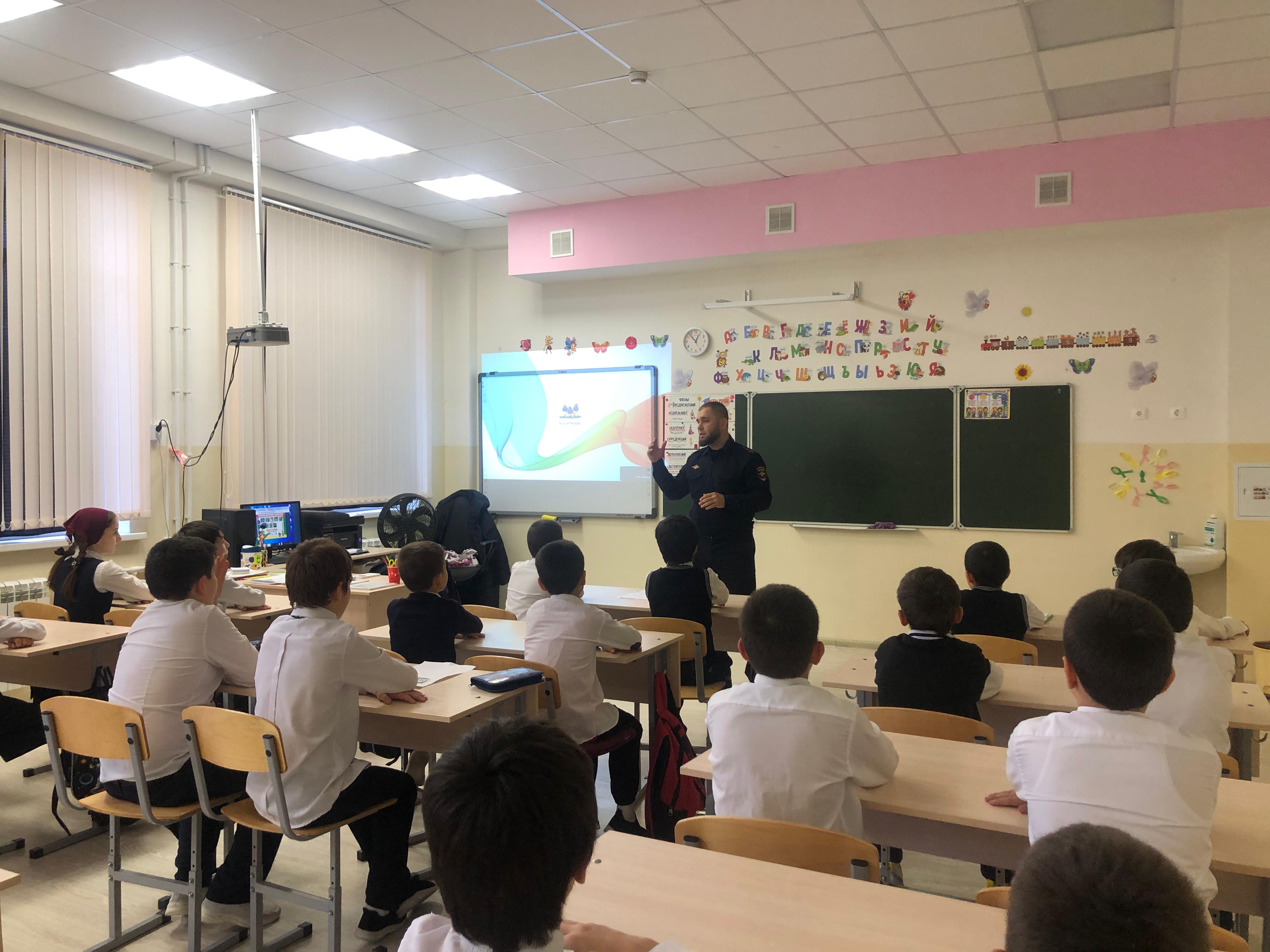 28.11.2024г в МБОУ «Мекенская СОШ» прошли беседы на тему:«Правило дорожного движения» с Начальником ОГИБДД ОМВД России по Наурскому району Хункурхановым Х.М.Цель: Повышение осведомленности учащихся о правилах дорожного движения и безопасном поведении на дороге.
