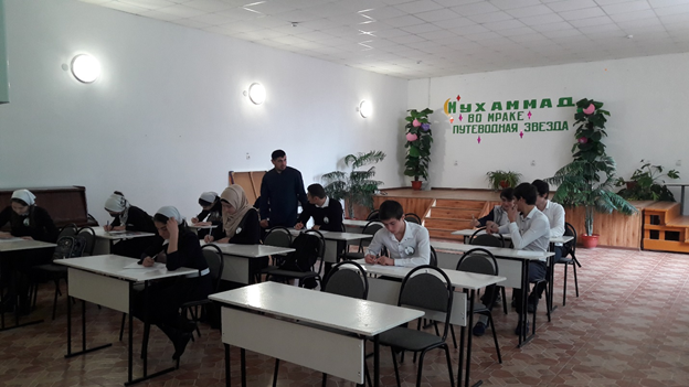 05.12.2017МБОУ «Мекенская СОШ»: «Самое лучшее и прекрасное создание из творений Всевышнего Аллаха»- расширенная беседа ко Дню рождения Пророка Мухаммада(да благословит Его Всевышний и приветствует)5декабря 2017 года в МБОУ «Мекенская СОШ» было проведено открытое мероприятие среди учащихся 9-11-х классов, посвященное Дню рождения Пророка Мухаммада(да благословит Его Всевышний и приветствует)На мероприятии присутствовали: администрация школы, педагог дополнительного образования Кубиев У.Ш. организатор Умарова З.М.., классные руководители 9-11-х классов.Основные цели мероприятия: духовно- нравственное воспитание учащихся, знакомство с жизнью и наследием Пророка Мухаммада (да благословит Его Всевышний и приветствует), воспитание учащихся на достоинствах Пророка Мухаммада, мусульманской нравственности и праведном поведении, знакомства с основными положениями мусульманской религии, воспитание толерантности, человеколюбия, гуманности .Мероприятие началось с выступления педагога-организатора Кубиева У.Ш.который рассказал о жизни Пророка (да благословит Его Всевышний и приветствует), Его пророческой миссии, о Коране. Он сделал акцент на том, что вера в единого Всевышнего является основой жизни каждого из нас. Мы, мусульмане, должны изо всех сил поддерживать Ислам, сохранять все накопленные знания, передавать их своим потомкам, следовать всем законам, предписанных нам Всевышним.Педагог дополнительного образования Кубиев У.Ш. для закрепления сказанного присутствующими на мероприятии духовными наставниками, организовал игру-викторину «Знаем ли мы Ислам». В процессе игры ребята проявили себя хорошими знатоками основ Ислама, знатоками семейного паспорта Пророка Мухаммада (да благословит Его Всевышний и приветствует). Итоги мероприятия подвел директор школы Алиева Л.Н. Она отметила, что каждый из нас обязан как можно больше знать о своей религии, делиться знаниями о ней, наставлять заблудших на истинный путь. Ислам идеален! Наша задача показать людям на сколько он совершенен и чист. И каждый из нас об этом должен помнить.