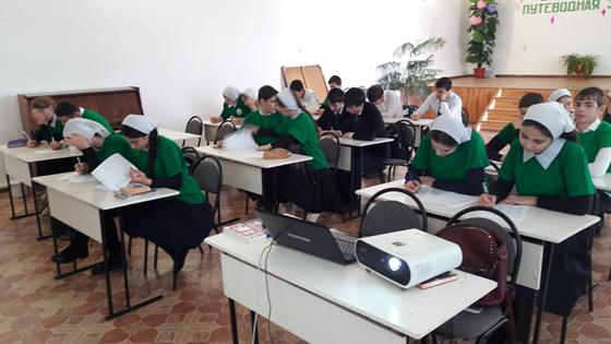 Для проведения этого мероприятия были подготовлены три кабинеты, по 15 человек в каждом кабинете. Куратором площадки была заместитель директора по ВР Хамзатова З.Р., которая обеспечивала работу площадки и была на связи с координатором. В аудиториях работали волонтёры, которые раздавали ручки , бланки тестов участникам диктанта. В написании этнографического диктанта приняли участие ученики школы, учителя,родители,работники школы. Все участники диктанта были добровольцами. Им была предоставлена возможность получить независимую оценку своих знаний в области этнографии и географии своего региона, повысить свою грамотность в этой области.