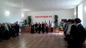 12.12.2017г. провели общешкольную линейку, посвященную Дню Конституции, на которой с литературно-музыкальной композицией выступил 5 «а» класс,также были приглашены гости из ДК ст.Мекенской с КВН