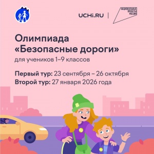 14.10.2025На Учи.ру 23 сентября — 26 октября для дошкольников и учеников 1–9 классов будет проводиться бесплатная всероссийская олимпиада «Безопасные дороги». Организаторами являются Минтранс России, ГУОБДД МВД России, Минпросвещения России, АНО «Национальные приоритеты», Учи.ру при поддержке национального проекта «Инфраструктура для жизни». Олимпиада входит в проект приказа перечня олимпиад Минпросвещения на 2025/26 учебный год. Соревнование направлено на: